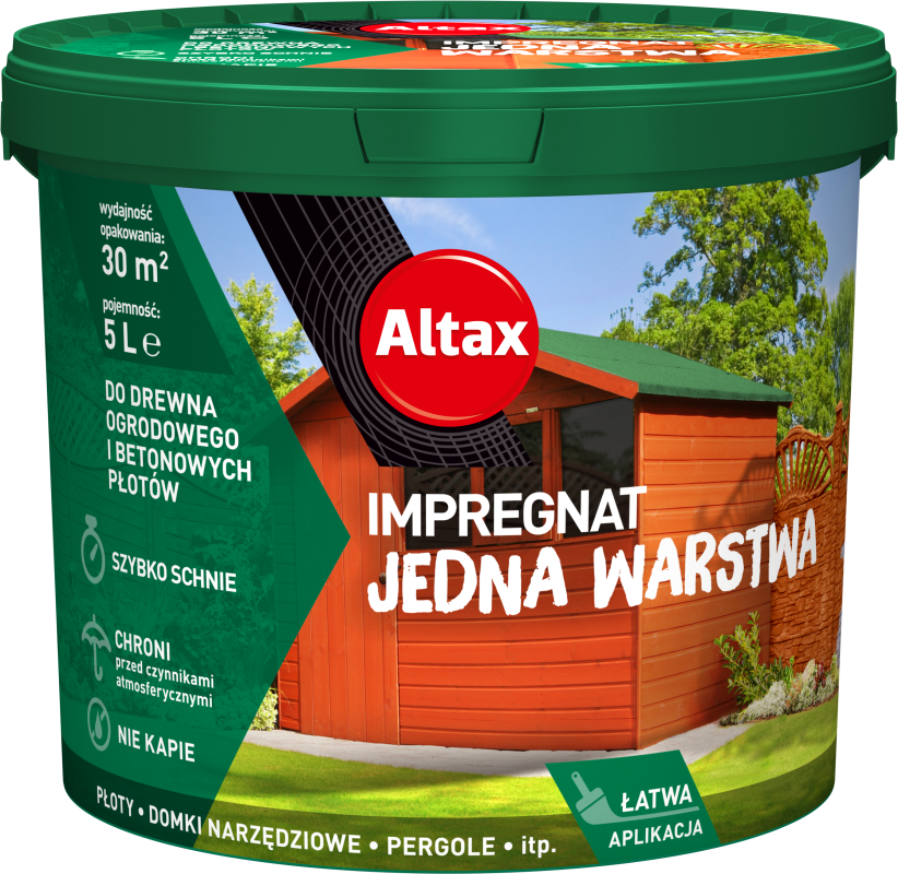 Powierzchnia powinno być sucha i czysta. Najlepiej malować w temperaturach od 10oC – 25oC. Drewno surowe, które nie jest zabezpieczone przed biokorozją powinniśmy wstępnie zabezpieczyć Impregnatem Gruntującym marki Altax.